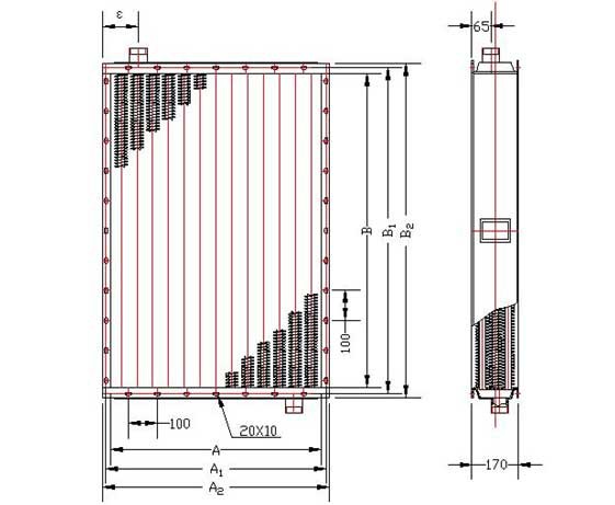①、②-分別為換熱器長(zhǎng),寬尺寸分米化整